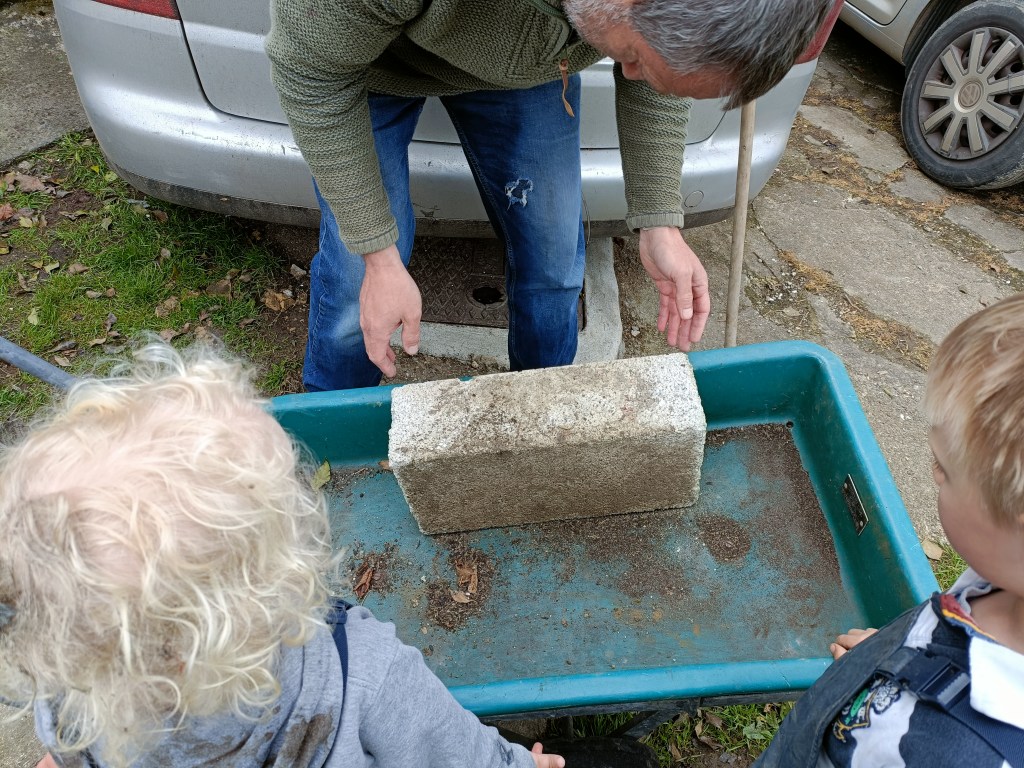 Then I saw the rusty Metal Planter that’s been in the hedge since last spring sometime when I first thought about making a bug hotel again with them (on a slightly smaller scale than the First ETW Big Hotel) and thought that will be a perfect project for 3 boys obsessed with bugs and creepy crawlies.