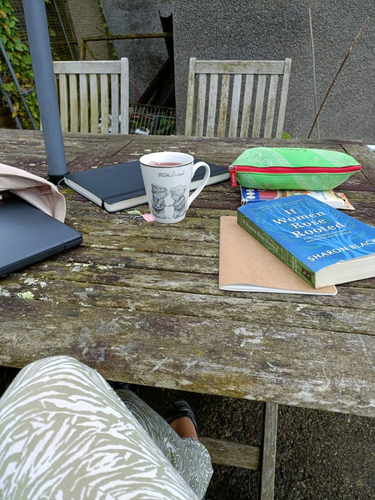 A few nights ago, while doing battle with WildOne3 that he needed to go back to his bed, the light fell on the bookshelves that sag with books that have been abandoned aside from the lower three shelves where the WildOnes books live. I picked up “If Women Rose Rooted” by Sharon Blackie. A book gifted to me by my mum years ago – probably to kick start what seems to be happening this week at last.