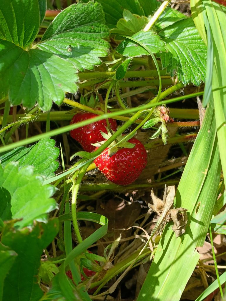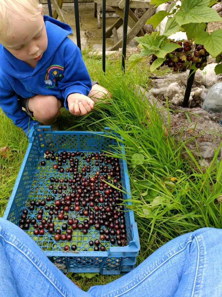 The season helps, too. The strawberries we’re picking straight from the front garden? No packaging, no pesticides, no chemicals. Soon we’ll be harvesting peas, beans, broccoli (yes, the leaves too), courgettes, carrots, garlic, and potatoes. I know we’re incredibly lucky to have the space to grow our own food. I even have currants in the freezer, waiting for me to remember to buy sugar and borrow GrandmaETW’s jam pot and thermometer. Another benefit of growing and harvesting our own veg? I can actually get the WildOnes (especially WildOne2) to try vegetables.